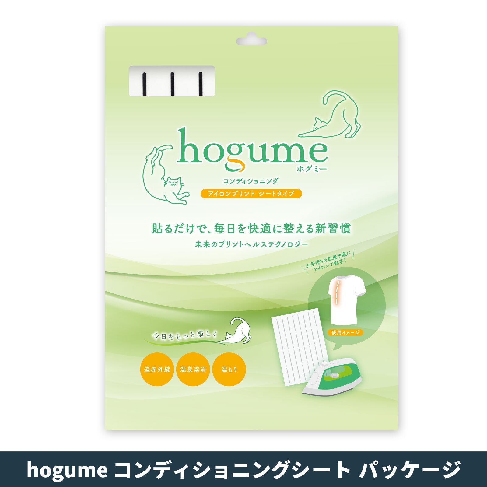 hogumeは、衣類に貼るタイプのコンディショニングシートです。 遠赤外線を放射する温泉溶岩の成分をシートに使い、お好きなアイテムにアイロンで貼るだけでやさしい温もりを与えます。